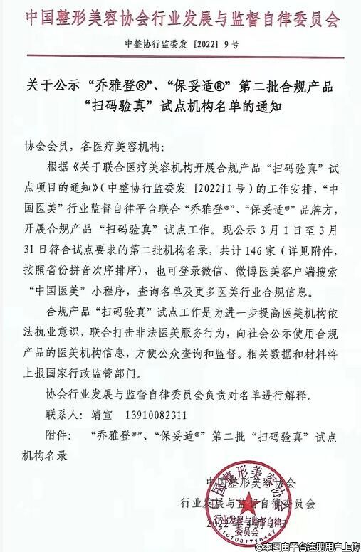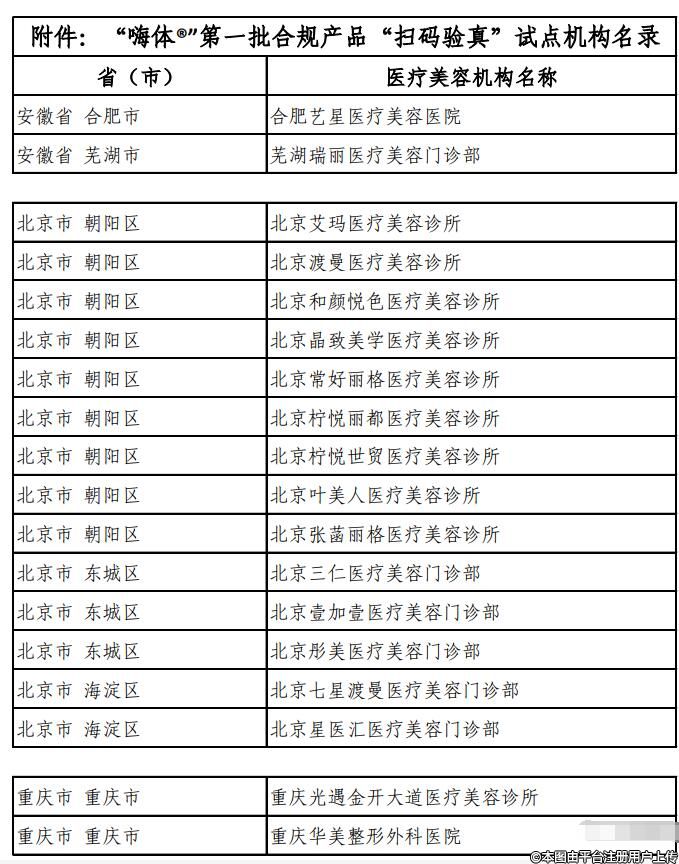 中整協(xié)公布一批“掃碼驗(yàn)真”試點(diǎn)醫(yī)美機(jī)構(gòu)名單