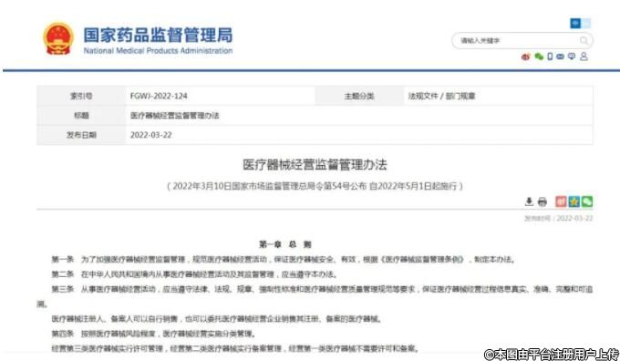 國家藥監(jiān)局發(fā)布醫(yī)療器械經(jīng)營監(jiān)督管理辦法 5月1日起施行