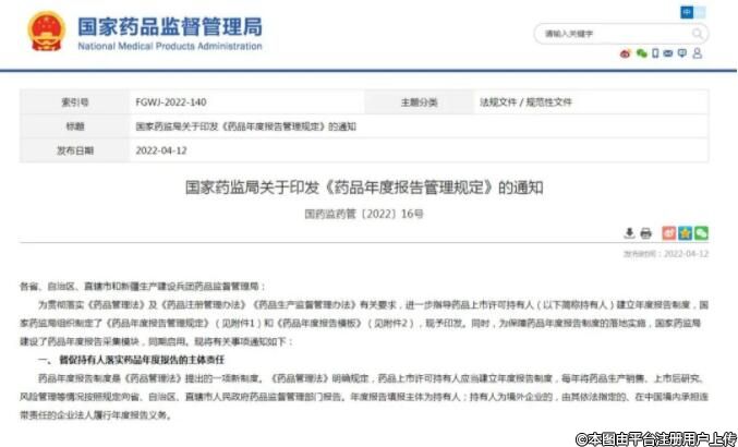 4月12日,國家藥監(jiān)局發(fā)布了關(guān)于印發(fā)《藥品年度報告管理規(guī)定》的通知。