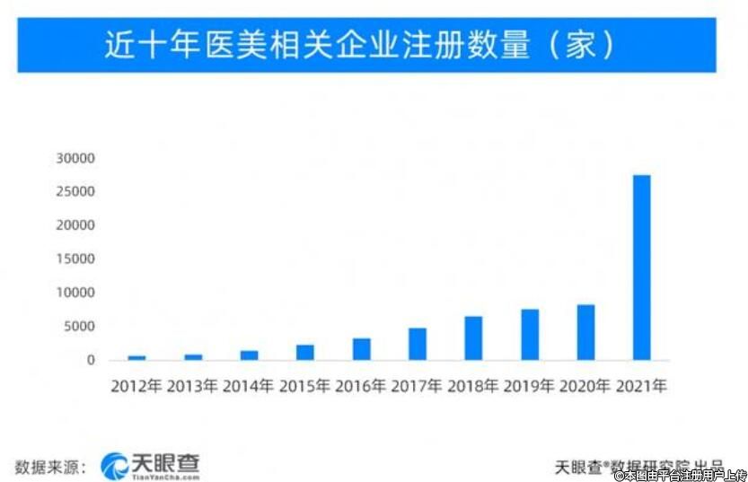 據(jù)相關(guān)數(shù)據(jù)顯示,我國(guó)目前醫(yī)美相關(guān)的企業(yè)就有8萬余家。受疫情影響,醫(yī)美機(jī)構(gòu)注冊(cè)2020年有所減緩??墒且咔榈玫娇刂浦?,盡管有監(jiān)管嚴(yán)年,醫(yī)美機(jī)構(gòu)新增的速度還是快速增長(zhǎng)了。其中,2021年新增注冊(cè)企業(yè)2.8萬家,增速達(dá)70.8%;