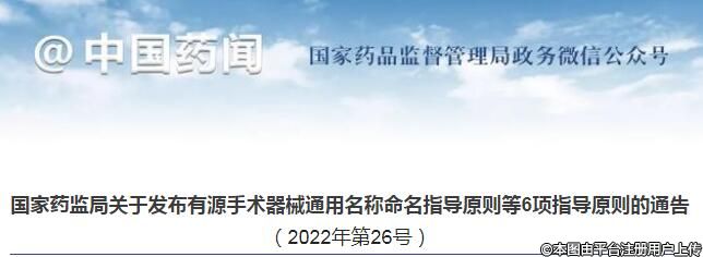 國家藥監(jiān)局發(fā)布《有源手術(shù)器械通用名稱命名指導(dǎo)原則》《物理治療器械通用名稱命名指導(dǎo)原則》《患者承載器械通用名稱命名指導(dǎo)原則》《眼科器械通用名稱命名指導(dǎo)原則》《注輸、護(hù)理和防護(hù)器械通用名稱命名指導(dǎo)原則》和《臨床檢驗器械通用名稱命名指導(dǎo)原則》,進(jìn)一步規(guī)范醫(yī)療器械通用名稱,加強(qiáng)醫(yī)療器械全生命周期管理。