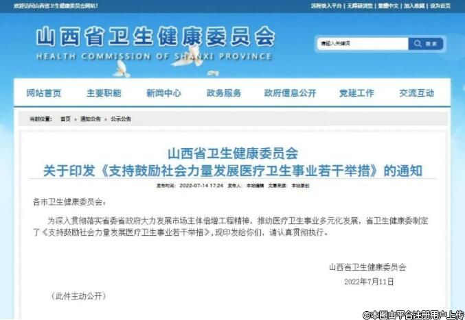 山西衛(wèi)健委:《支持鼓勵(lì)社會(huì)力量發(fā)展醫(yī)療衛(wèi)生事業(yè)若干舉措》的通知
