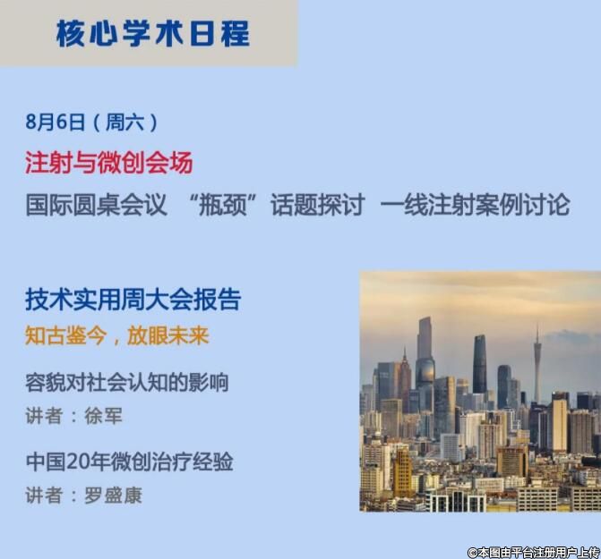 本次盛會(huì)將從臨床實(shí)際出發(fā),結(jié)合大體解剖、理論探討及病例討論,邀請(qǐng)國(guó)內(nèi)外知名專(zhuān)家,與您一起聚焦注射及皮膚美容熱點(diǎn)和難點(diǎn),齊聚羊城,共話(huà)醫(yī)美。