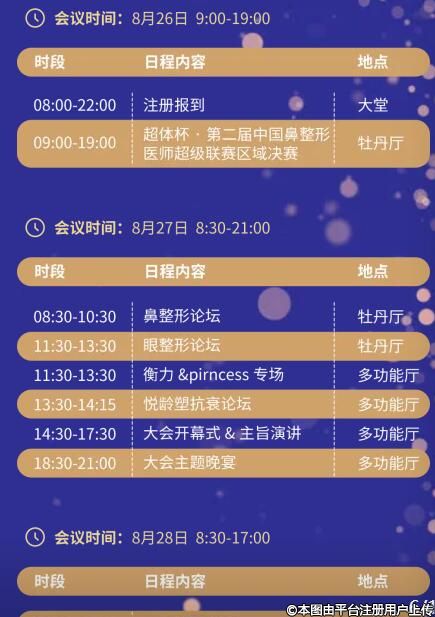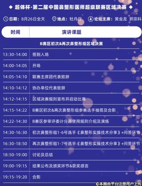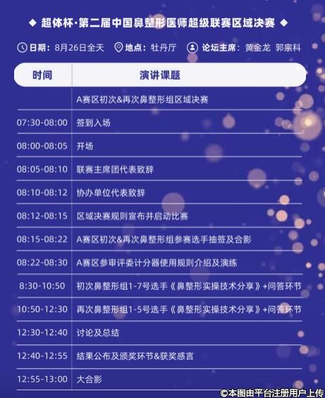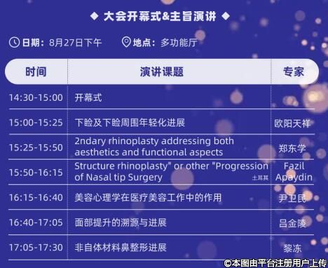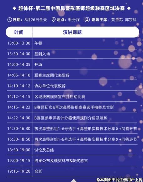 會(huì)議期間將同時(shí)進(jìn)行眼鼻整形年輕化實(shí)戰(zhàn)技術(shù)高峰論壇、超體杯·第二屆中國(guó)鼻整形醫(yī)師超級(jí)聯(lián)賽區(qū)域決賽,并舉辦眼整形、鼻整形等各個(gè)醫(yī)學(xué)美容領(lǐng)域的專(zhuān)題學(xué)術(shù)論壇。