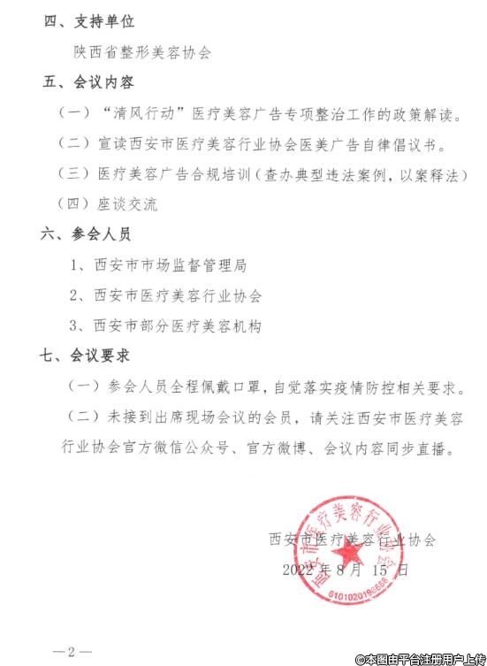 (二)未接到出席現(xiàn)場(chǎng)會(huì)議的會(huì)員,請(qǐng)關(guān)注西安市醫(yī)療美容行業(yè)協(xié)會(huì)官方微信公眾號(hào)、官方微博、會(huì)議內(nèi)容同步直播。