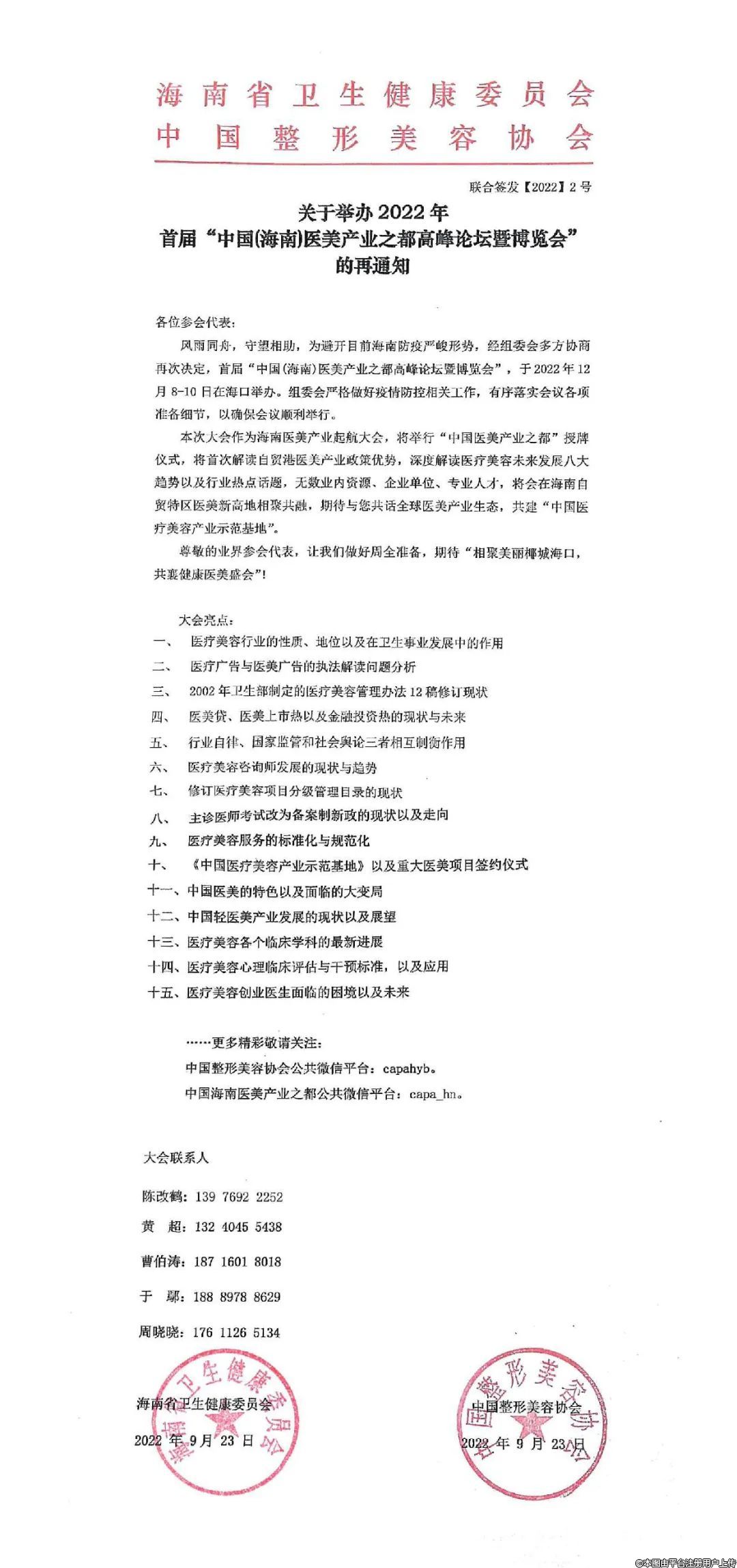 在“健康中國”國家戰(zhàn)略的宏觀背景下,在海南省人民政府的領(lǐng)導(dǎo)和支持下,由海南省衛(wèi)生健康委員會和中國整形美容協(xié)會共同主辦的首屆“中國(海南)醫(yī)美產(chǎn)業(yè)之都高峰論壇暨博覽會”將于2022年12月8日-10日在海南省??趪H會議展覽中心隆重舉辦。