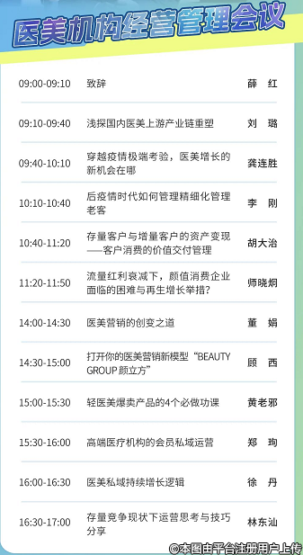 本次“醫(yī)美機(jī)構(gòu)數(shù)智化新媒體會(huì)議”、“醫(yī)美機(jī)構(gòu)經(jīng)營管理會(huì)議”和“醫(yī)療美容安全合規(guī)與可持續(xù)發(fā)展會(huì)議”將邀請(qǐng)數(shù)智、營銷、經(jīng)營、法律、私域等領(lǐng)域的知名專家、專業(yè)大咖,針對(duì)醫(yī)美機(jī)構(gòu)在數(shù)智化創(chuàng)新轉(zhuǎn)型過程中遇到的關(guān)于數(shù)字化運(yùn)營、財(cái)稅合規(guī)、法律風(fēng)險(xiǎn)、質(zhì)量認(rèn)證、私域落地、營銷增長、用戶管理等各方面的問題開展深入的研究與探討,共同分享實(shí)踐案例和優(yōu)秀經(jīng)驗(yàn),探尋醫(yī)美機(jī)構(gòu)在數(shù)字經(jīng)濟(jì)時(shí)代下的創(chuàng)新與破局之路,共建醫(yī)美機(jī)構(gòu)數(shù)智未來。