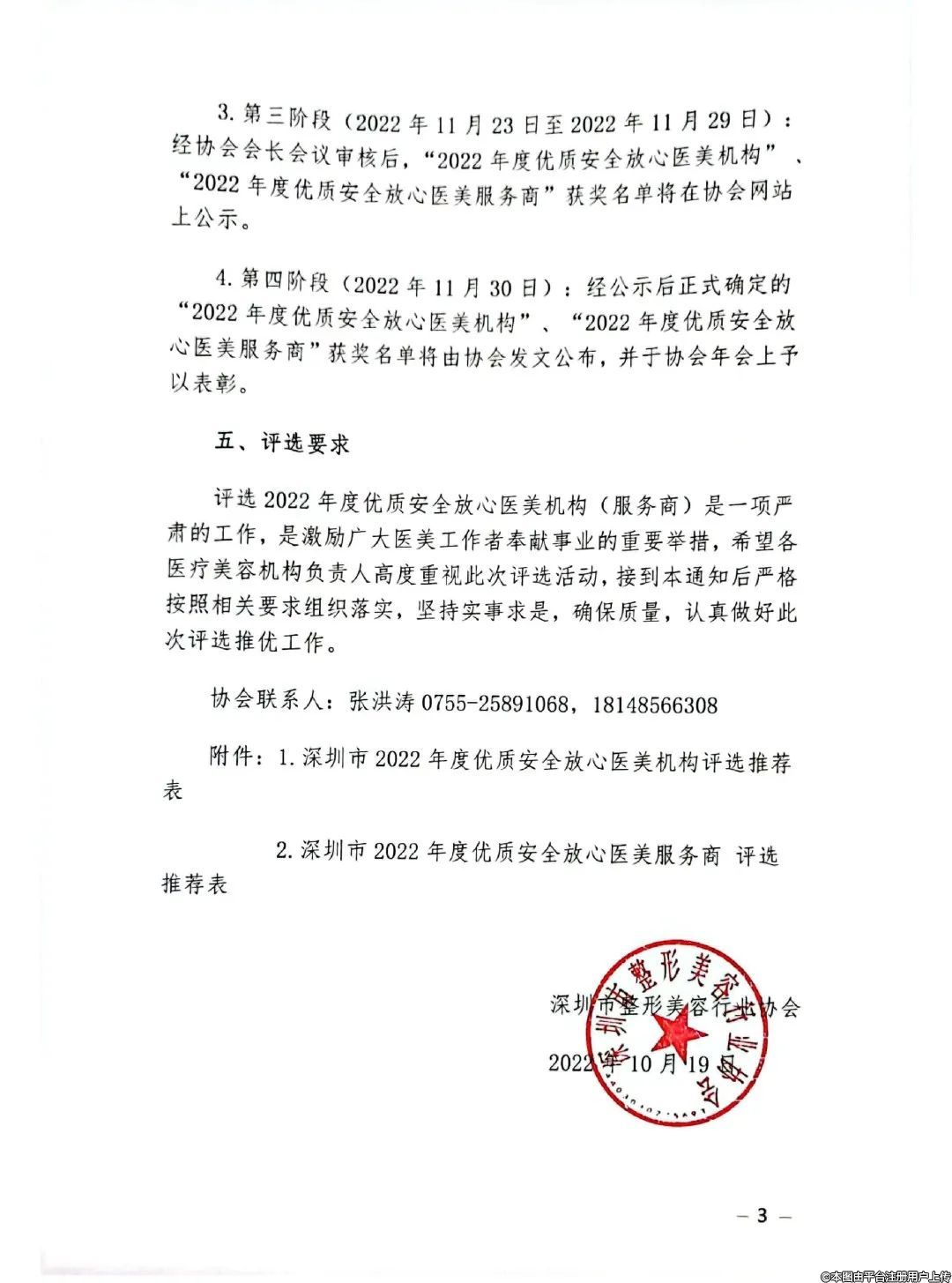 1.評選范圍:深圳市整形美容行業(yè)協(xié)會2022年度已繳納會費的會員單位。