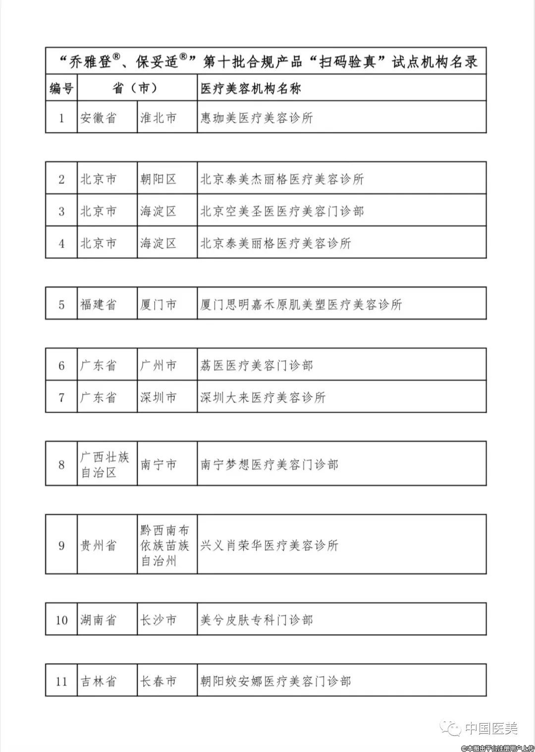附 件:“喬雅登?”、“保妥適?”第十批合規(guī)產(chǎn)品“掃碼驗(yàn)真”試點(diǎn)機(jī)構(gòu)名單