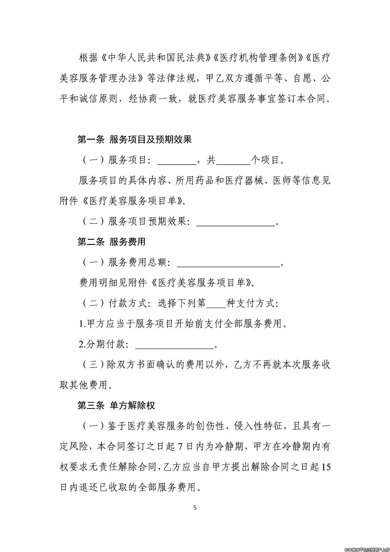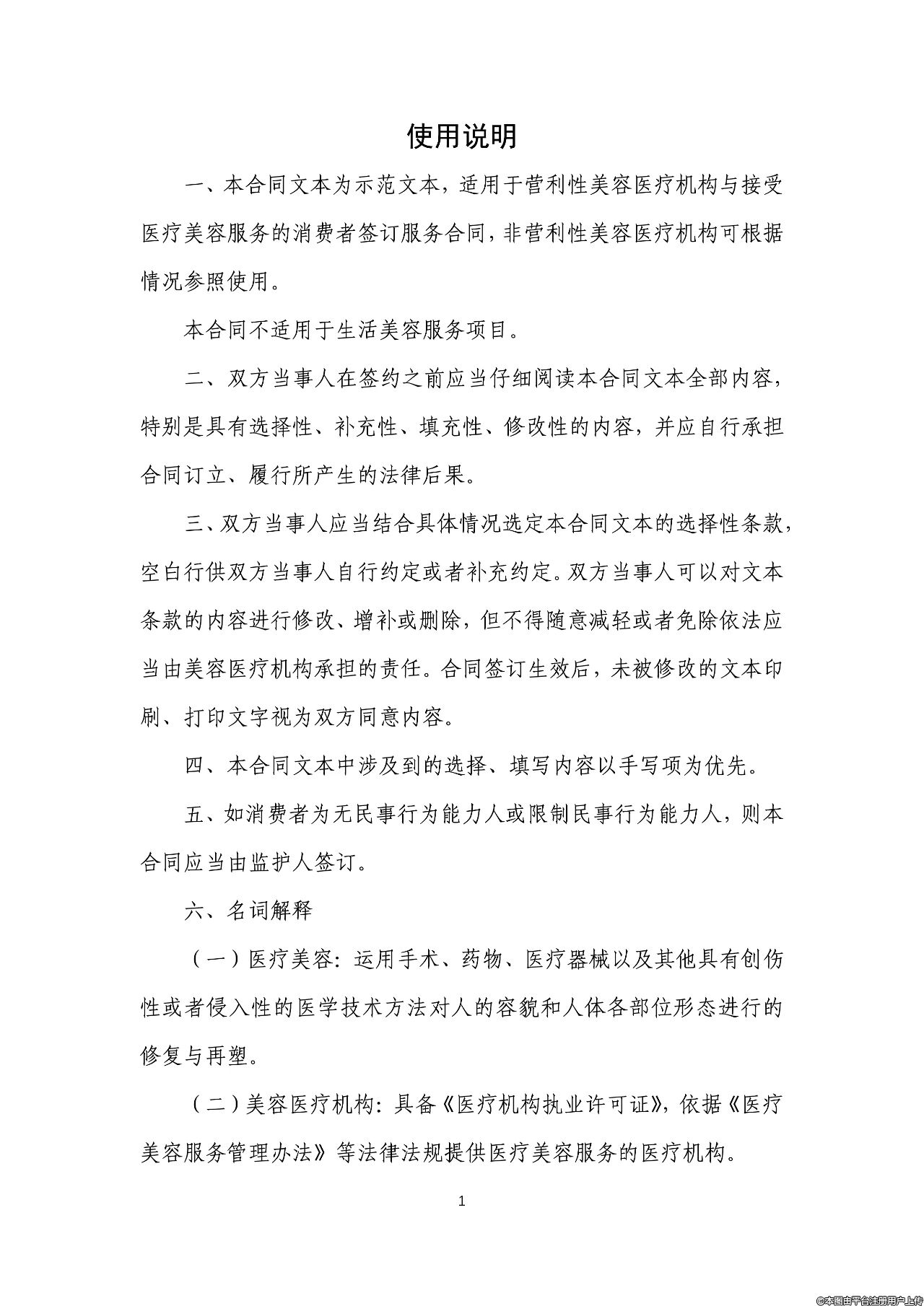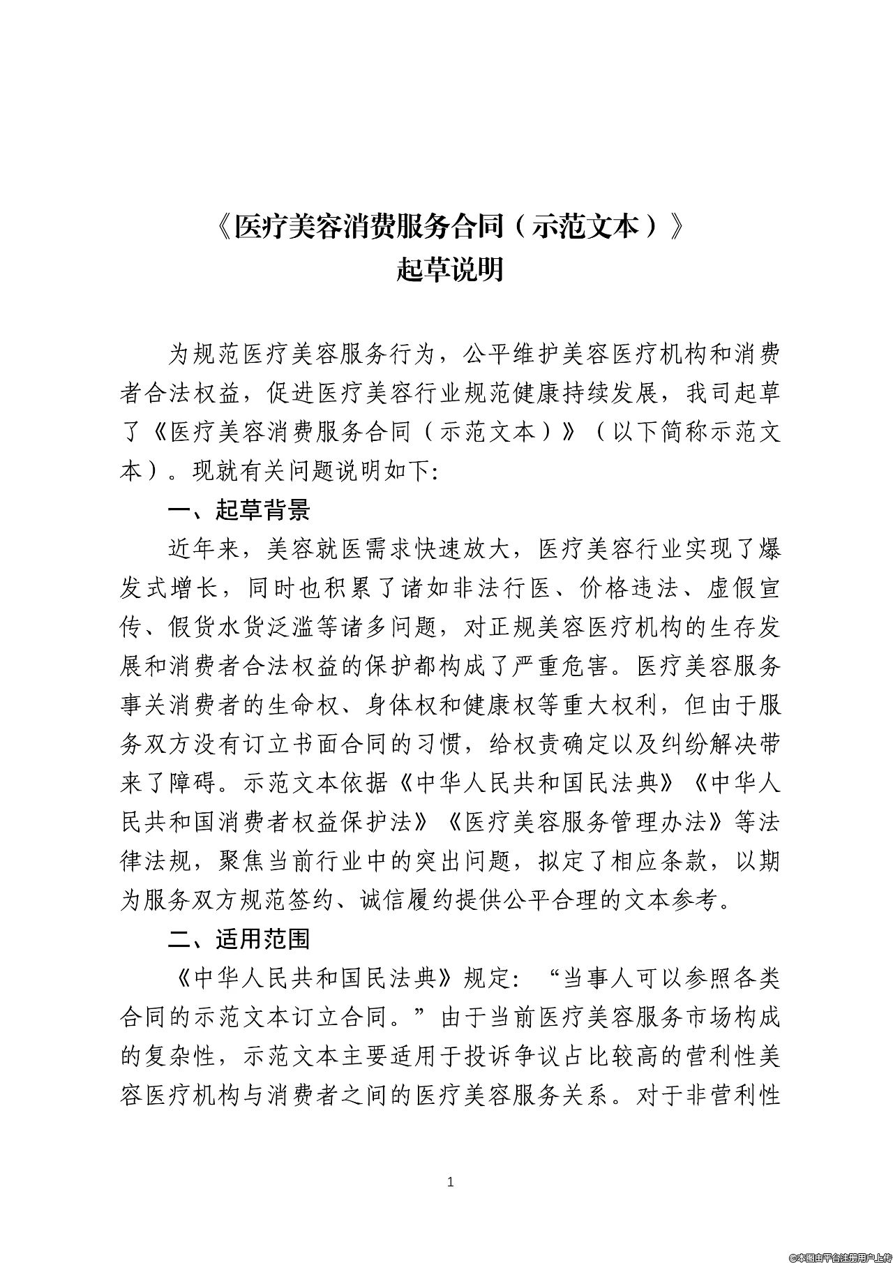 《醫(yī)療美容消費(fèi)服務(wù)合同(示范文本)》(征求意見稿)