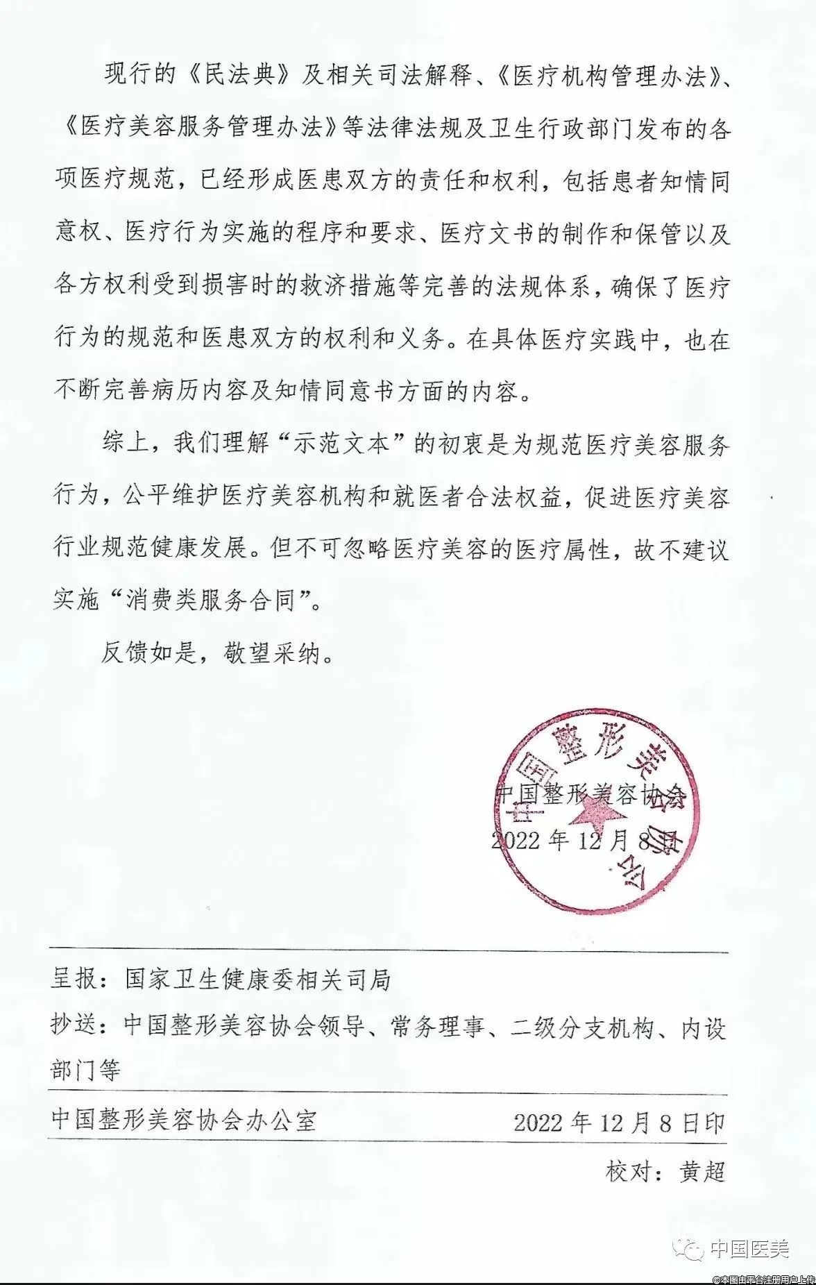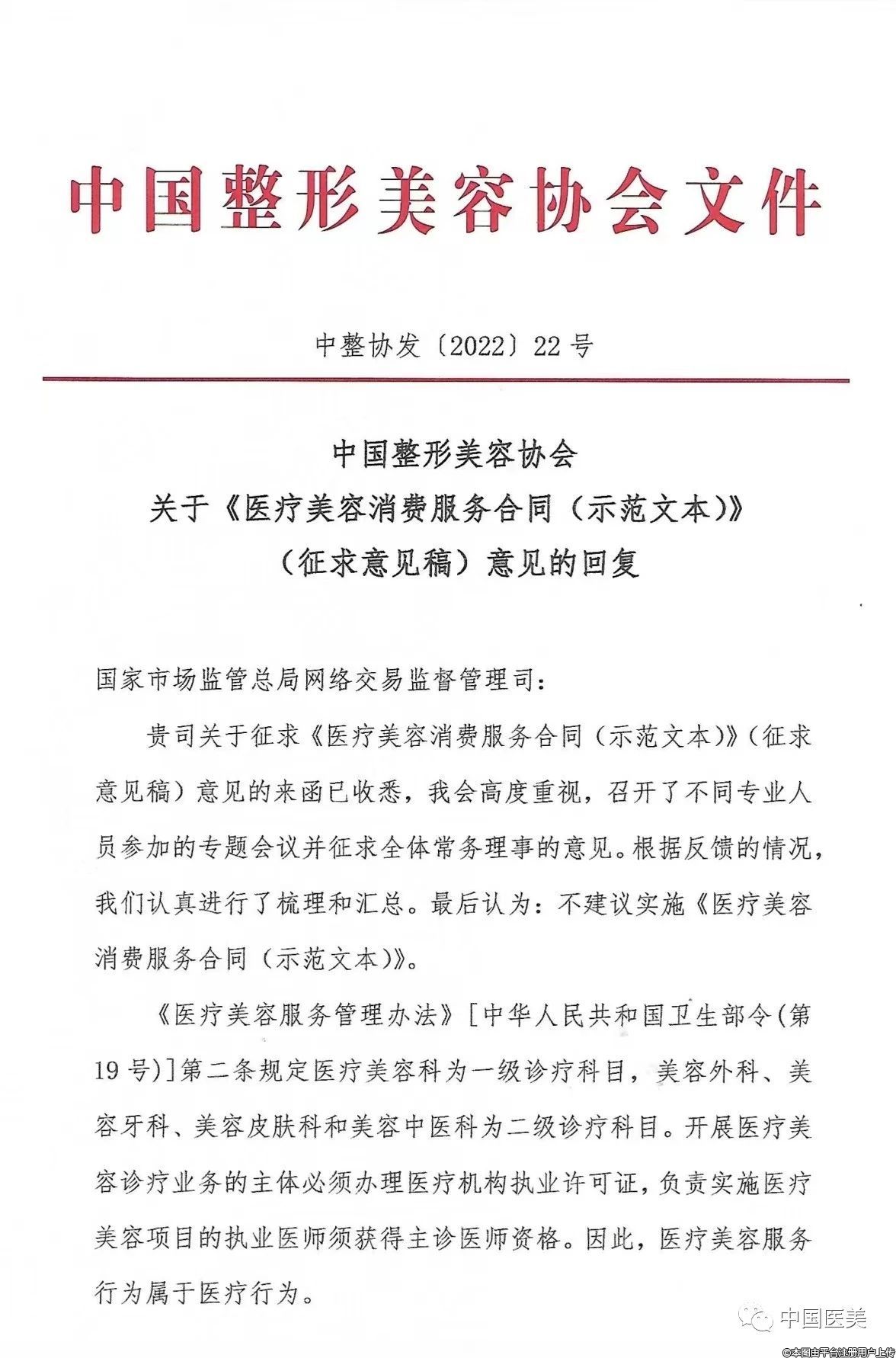 中國整形美容協(xié)會(huì)關(guān)于《醫(yī)療美容消費(fèi)服務(wù)合同(示范文本)》(征求意見稿)意見的回復(fù)