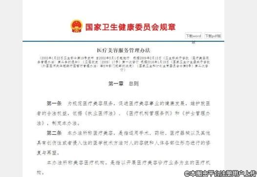 國家衛(wèi)健委《醫(yī)療美容服務(wù)管理辦法》截圖