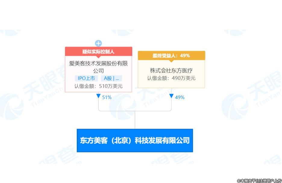 ▲東方美客系由愛美客與韓國DongBang合資成立(圖源:天眼查)