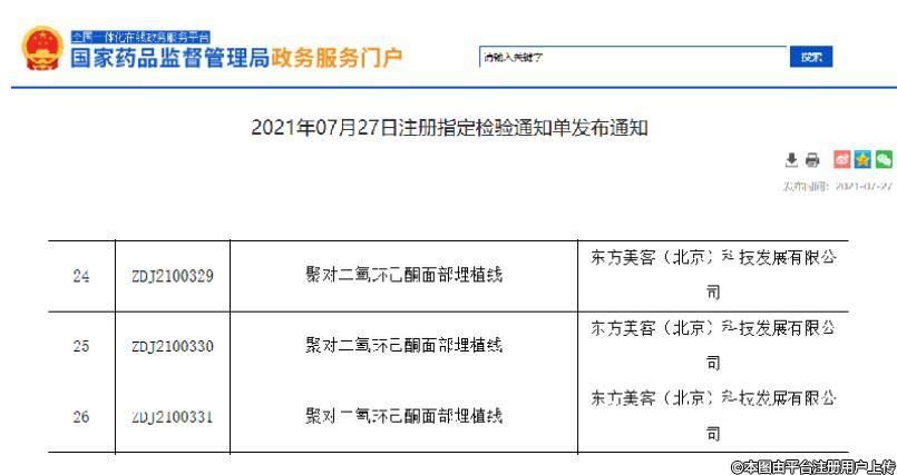 據(jù)悉,東方美客系由(以下簡稱“愛美客”,股票代碼:300896)與韓國DongBang Medical co.,Ltd(株式會社東方醫(yī)療)合資成立。其中,愛美客持有該公司51%股份。東方美客通過引進韓國專利技術(shù),進行埋植線產(chǎn)品的研發(fā)和生產(chǎn),將進一步提升其在埋植線產(chǎn)品方向的長期領(lǐng)先和競爭能力。(推薦閱讀:喜訊 | Dong Bang Medical“注射用交聯(lián)透明質(zhì)酸鈉凝膠”獲NMPA批準上市?。┕_資料獲悉,2021年7月,東方美客正式啟動3款“聚對二氧環(huán)己酮面部埋植線”注冊申報工作。