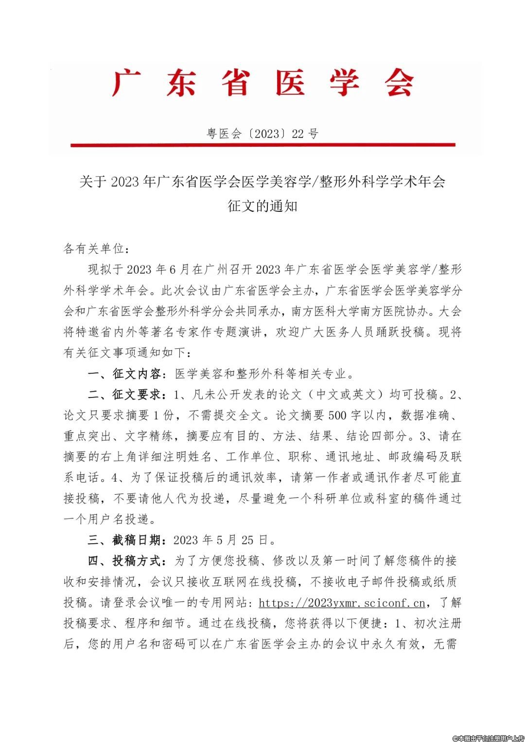 征文通知 2023年廣東省醫(yī)學(xué)會(huì)醫(yī)學(xué)美容學(xué)/整形外科學(xué)學(xué)術(shù)年會(huì)