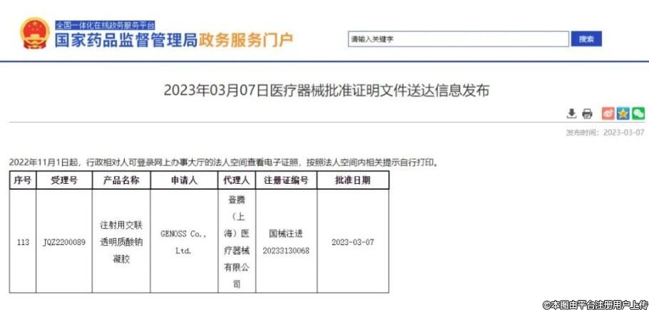 3月7日消息,康哲藥業(yè)控股有限公司旗下皮膚醫(yī)美業(yè)務公司康哲美麗“MONALISA Lidocaine Filler含利多卡因注射用交聯(lián)透明質酸鈉凝膠”正式獲得NMPA批準上市,注冊證號:國械注進20233130068。