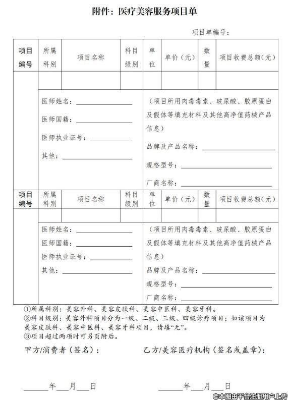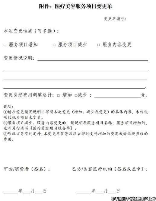 4、附件:《醫(yī)療美容服務(wù)項目單》和《醫(yī)療美容服務(wù)項目變更單》。