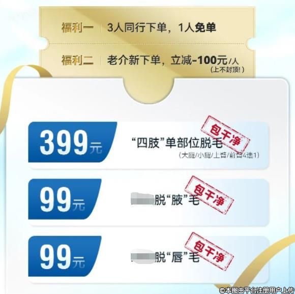 龍巖臉博士花yang脫毛節(jié)福利 3人同行下單一人免單
