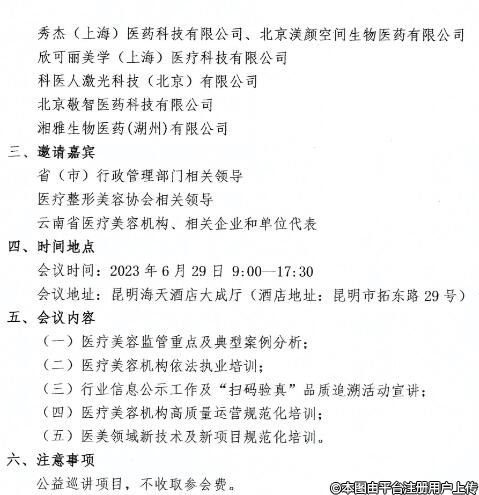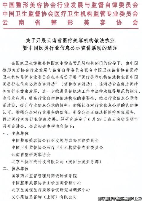 關(guān)于開展云南省醫(yī)療美容機(jī)構(gòu)依法執(zhí)業(yè)暨中國(guó)醫(yī)美行業(yè)信息公示宣講活動(dòng)的通知