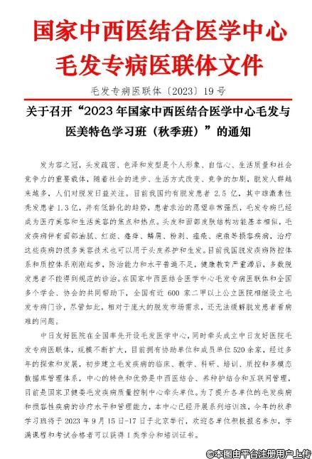 國(guó)家中西醫(yī)結(jié)合醫(yī)學(xué)中心毛發(fā)與醫(yī)美特色學(xué)習(xí)班通知