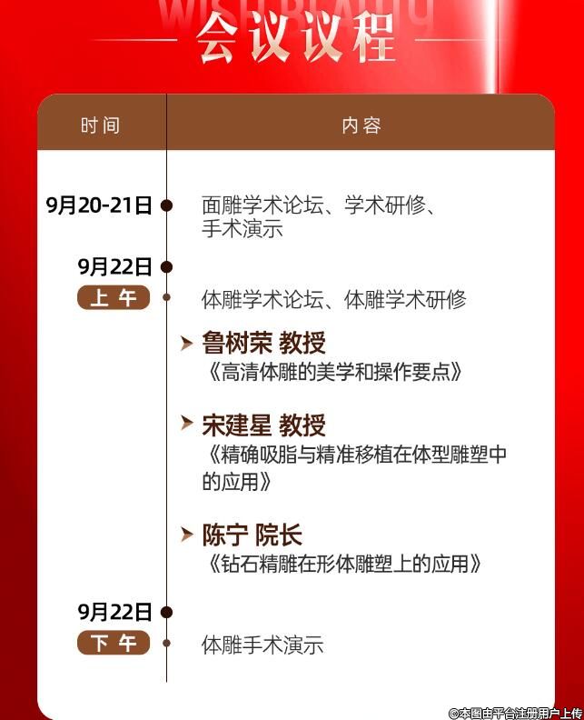 9月20日-21日,會議將舉辦面雕學(xué)術(shù)論壇。期間,與會專家將就面雕塑美進(jìn)行課題分享與手術(shù)演示。