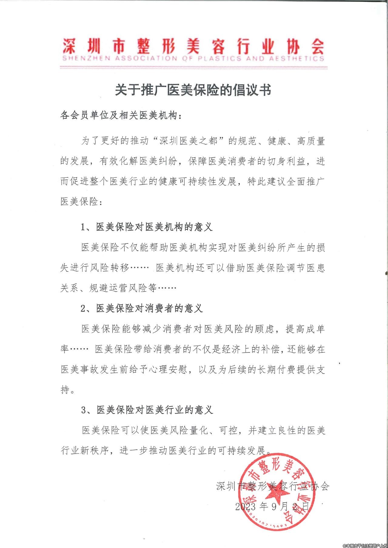 為了更好的推動(dòng)“深圳醫(yī)美之都”的規(guī)范、健康、高質(zhì)量的發(fā)展,有效化解醫(yī)美糾紛,保障醫(yī)美消費(fèi)者的切身利益,進(jìn)而促進(jìn)整個(gè)醫(yī)美行業(yè)的健康可持續(xù)性發(fā)展,特此建議全面推廣醫(yī)美保險(xiǎn)。