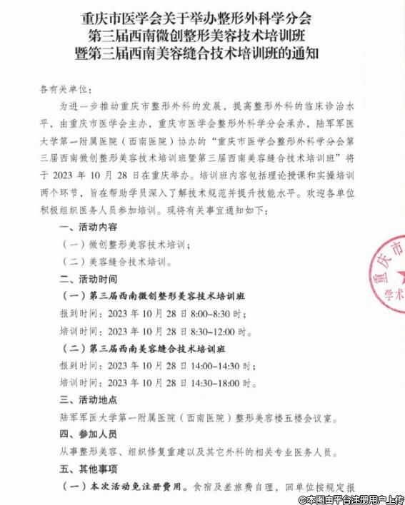 [學(xué)術(shù)交流]重慶市第三屆西南微創(chuàng)整形美容技術(shù)培訓(xùn)班通知