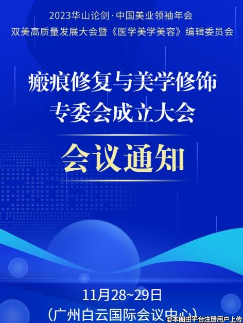 各位醫(yī)美人,又有一個專委會成立是了,《醫(yī)學(xué)美學(xué)美容》編輯委員會同意了的。11月28日-29日瘢痕修復(fù)與美學(xué)修飾專委會成立大會將在廣州白云國際會議中心開幕,歡迎大家來參加。