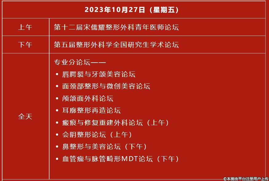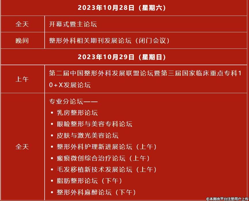 議程包含第十二屆宋儒耀整形外科青年醫(yī)師論壇、第五屆整形外科學(xué)全國(guó)研究生學(xué)術(shù)論壇、第二屆中國(guó)整形外科發(fā)展聯(lián)盟論壇暨第三屆國(guó)家臨床重點(diǎn)專科10+X發(fā)展論壇和16個(gè)專業(yè)分論壇。