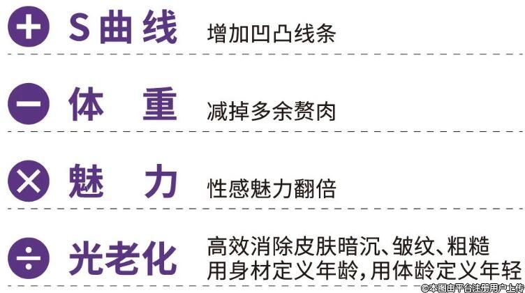 S魔鬼躺瘦,通過標(biāo)記脂肪-爆脂- 清脂,實現(xiàn)快樂瘦-躺著瘦-健康瘦!體驗者圍度減少同時增加緊致塑形,打造S有型曲線,有加有減,平衡體態(tài),并舒適快樂的體驗感受。對富貴包、蝴蝶袖、肥厚肩胛、胃包脹氣、腰腹脂肪、媽媽臀、大腿脂肪等癥狀有很好的針對性,對于沒時間塑形、虛胖、水腫體制、飲食過量激素體制的姐妹們非常友好。