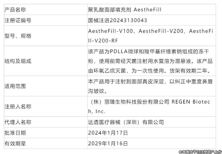 AestheFill 童顏針為韓國知名醫(yī)美企業(yè)REGEN Biotech, Inc.研發(fā)的一款“醫(yī)美再生注射劑”,于2014年首次在韓國獲批上市,截至目前已在全球60余個國家和地區(qū)上市銷售。2024年1月17日,AestheFill獲國家藥品監(jiān)督管理局批準(zhǔn),正式登陸中國內(nèi)地市場。