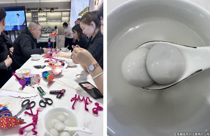古人稱元宵為“浮圓子”,也有人稱之為“元寶”。南方的元宵與北方的湯圓在做法上略有不同,但外觀相似,因其圓滾滾的外形,元宵時(shí)常被寄予“團(tuán)圓”的美好寓意?;顒?dòng)現(xiàn)場邀請(qǐng)“麗寶”們煮湯圓、品元宵,工作人員把象征團(tuán)圓吉祥的湯圓送到大家手中,也讓大家更深刻體會(huì)到中國傳統(tǒng)節(jié)日的氛圍和內(nèi)涵。
