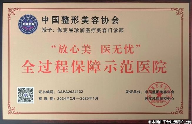 2024保定珍潤(rùn)再次榮獲“放心美 醫(yī)無(wú)憂”全過(guò)程保障示范醫(yī)院