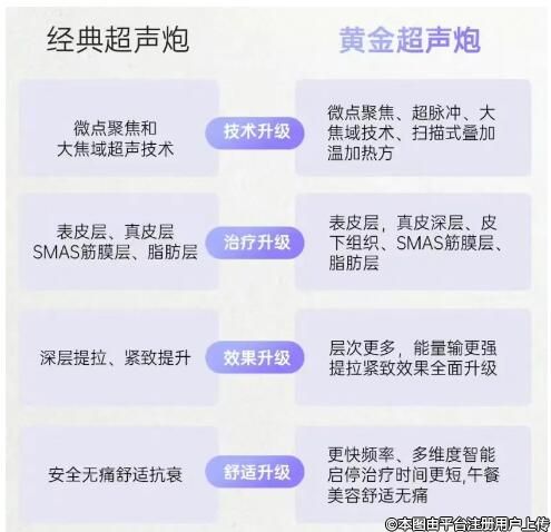 至于半島公司的兩款超聲抗衰產品——經典超聲炮和黃金超聲炮,倒是可以比較一下。