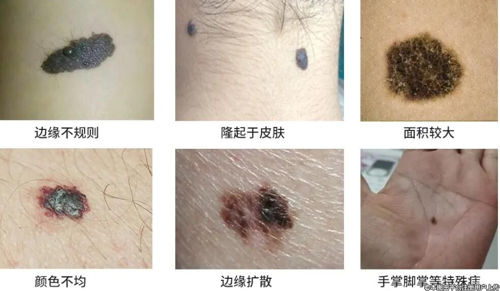 一般面積比較大(>1cm)、邊緣不規(guī)則、顏色交雜不均、隆起于皮膚、還有那些以前沒(méi)有突然長(zhǎng)出來(lái)以及在短期內(nèi)突然變大的痣都有一定的“危險(xiǎn)性”,還要特別注意長(zhǎng)在手掌、腳底、腋窩、腹股溝等位置的痣,因?yàn)榻?jīng)常會(huì)被摩擦刺激到,黑素細(xì)胞也有可能忽然“發(fā)瘋”哦。