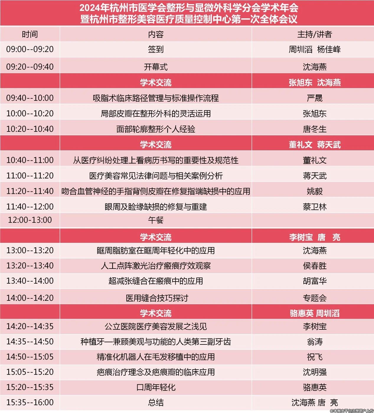 為加強(qiáng)聯(lián)絡(luò)杭州市各界從事整形美容與顯微外科工作的醫(yī)務(wù)工作者,加強(qiáng)溝通,傳播知識(shí)、共享技術(shù)、促進(jìn)杭州整形美容與顯微外科學(xué)術(shù)領(lǐng)域的積極交流,提高杭州整形美容與顯微外科的整體水平。由杭州市醫(yī)學(xué)會(huì)主辦、杭州市臨安區(qū)中醫(yī)院承辦的2024年杭州市醫(yī)學(xué)會(huì)整形與顯微外科學(xué)分會(huì)學(xué)術(shù)年會(huì)定于2024年4 月在杭州臨安召開。屆時(shí)將邀請(qǐng)整形外科、顯微外科及皮膚科領(lǐng)域的知名專家進(jìn)行授課。