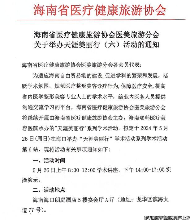 海南省醫(yī)療健康旅游協(xié)會醫(yī)美旅游分會關(guān)于舉辦天涯美麗行(六)活動的通知