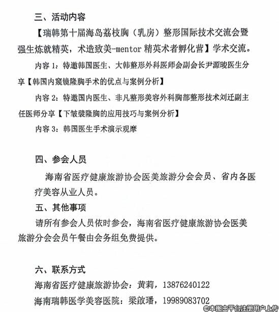 為適應(yīng)海南自由貿(mào)易港的建設(shè),促進學科的繁榮和發(fā)展,活躍學術(shù)氛圍,規(guī)范醫(yī)療整形美容診療行為,保障醫(yī)療安全,提高省內(nèi)醫(yī)學整形美容專業(yè)人士的學術(shù)水平,給業(yè)內(nèi)醫(yī)務(wù)人員提供溝通交流學習的平臺,海南省醫(yī)療健康旅游協(xié)會醫(yī)美旅游分會將繼續(xù)開展由海南省醫(yī)療健康旅游協(xié)會主辦,海南瑞韓醫(yī)療美容醫(yī)院承辦的"天涯美麗行"系列學術(shù)活動。擬定于2024年5月26日(周日)在??谂e辦“天涯美麗行”學術(shù)活動系列學術(shù)活動第6站。