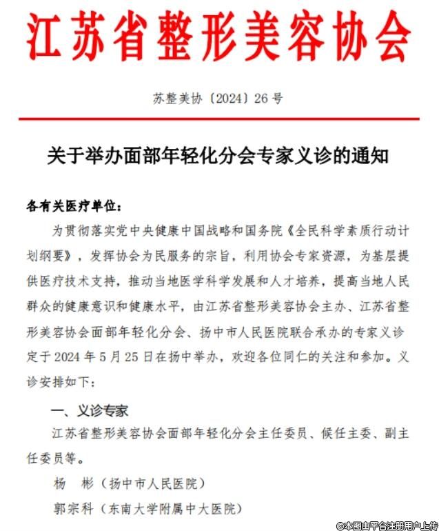 關(guān)于舉辦面部年輕化分會專家義診的通知