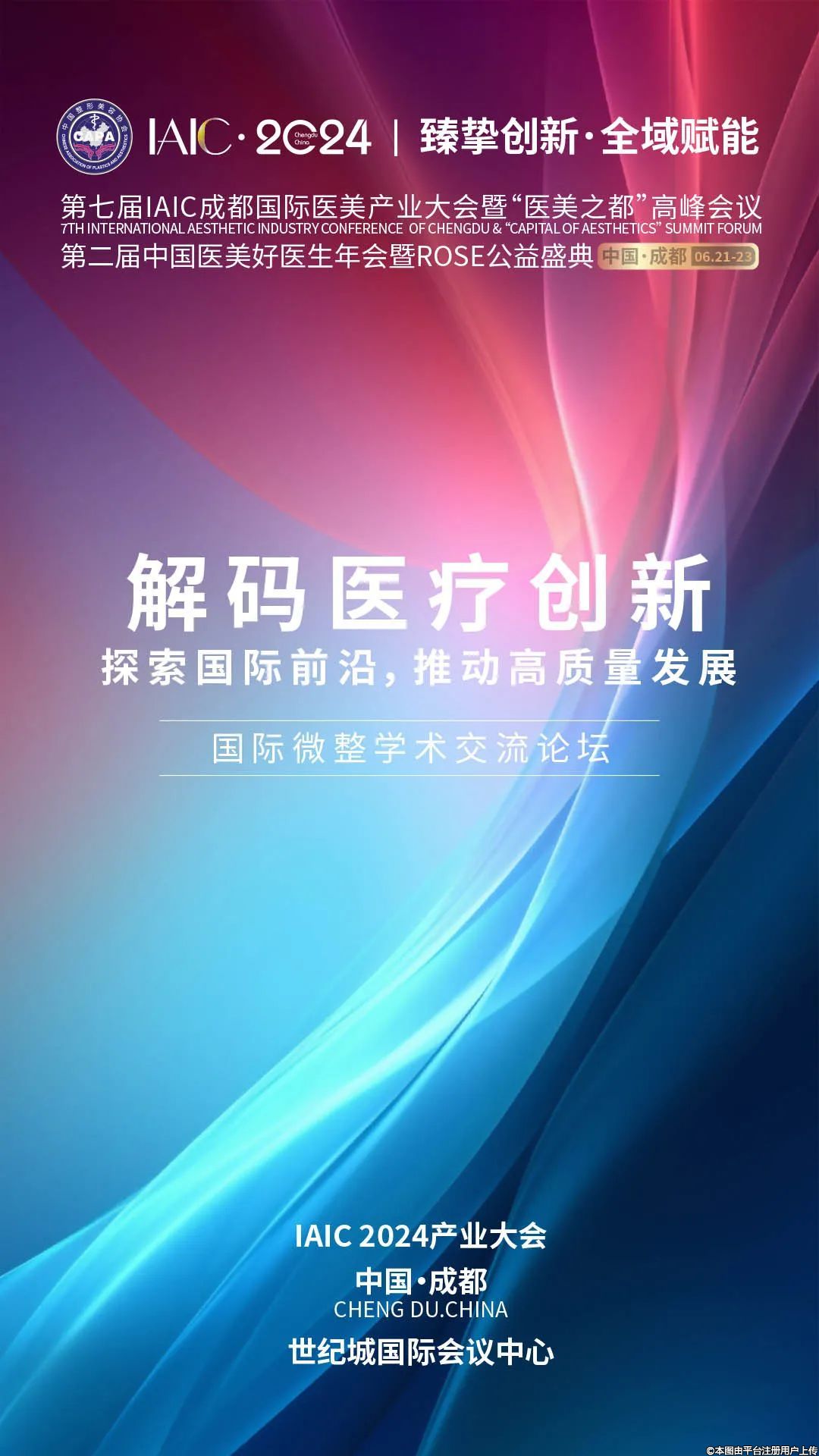 隨著醫(yī)美行業(yè)的蓬勃發(fā)展,全球對先進微整形技術和前端安全材料的關注日益升溫。2024年6月21日至23日,將盛大舉行第七屆IAIC(成都)國際醫(yī)美產業(yè)大會暨“醫(yī)美之都”高峰會議,以“傳遞市場信任、樹立品牌榜樣、助力科技與監(jiān)管創(chuàng)新、推動高質量發(fā)展”為主題,促進美容醫(yī)學和微整形技術的創(chuàng)新與發(fā)展。