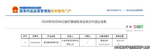 6月6日消息,長春圣博瑪生物材料有限公司(以下簡稱“圣博瑪”)關(guān)于“聚乳酸面部填充劑(商品名:艾維嵐Loviselle)”的延續(xù)注冊申請成功獲得NMPA批準。