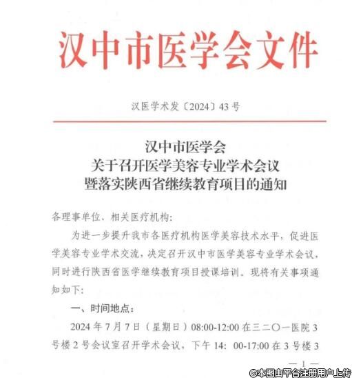 漢醫(yī)學術(shù)發(fā)〔2024〕43號 關(guān)于召開醫(yī)學美容專業(yè)學術(shù)會議暨落實陜西省繼續(xù)教育項目的通知