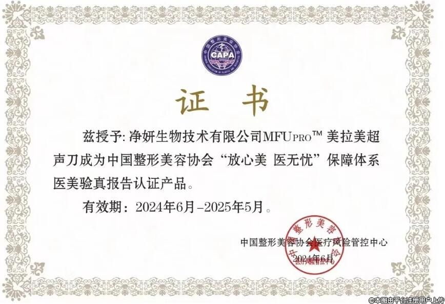 凈妍生物MFUpro美拉美超聲刀成為中國(guó)整形美容協(xié)會(huì)“放心美·醫(yī)無(wú)憂”保障體系醫(yī)美驗(yàn)真報(bào)告認(rèn)證產(chǎn)品。標(biāo)志著MFUpro美拉美超聲刀在保障消費(fèi)者權(quán)益、推動(dòng)行業(yè)誠(chéng)信建設(shè)方面邁著堅(jiān)實(shí)步履。這不僅是對(duì)產(chǎn)品的高度肯定,更是對(duì)整個(gè)行業(yè)發(fā)出的積極信號(hào);只有將誠(chéng)信與質(zhì)量放在首位,才能贏得市場(chǎng)的長(zhǎng)久信賴,共同推動(dòng)醫(yī)美行業(yè)的可持續(xù)發(fā)展。