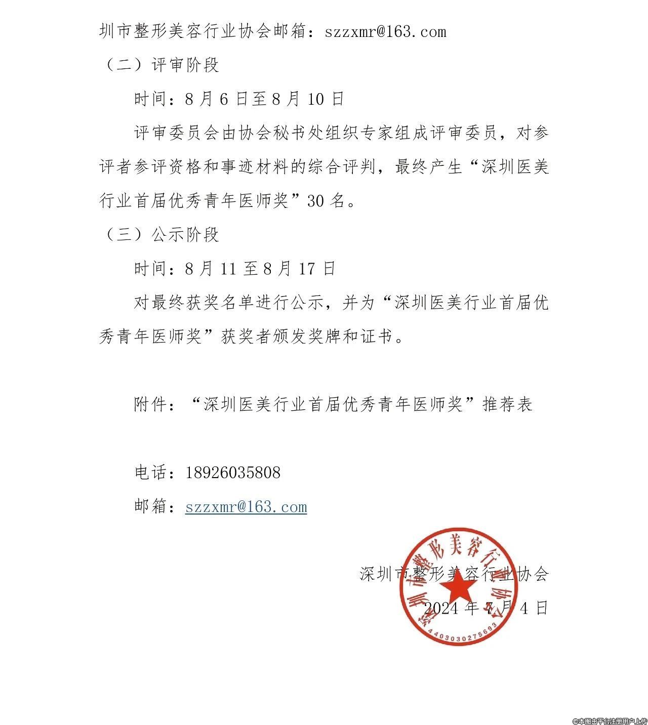 關(guān)于“深圳醫(yī)美行業(yè)首屆優(yōu)秀青年醫(yī)師獎”評選活動的通知