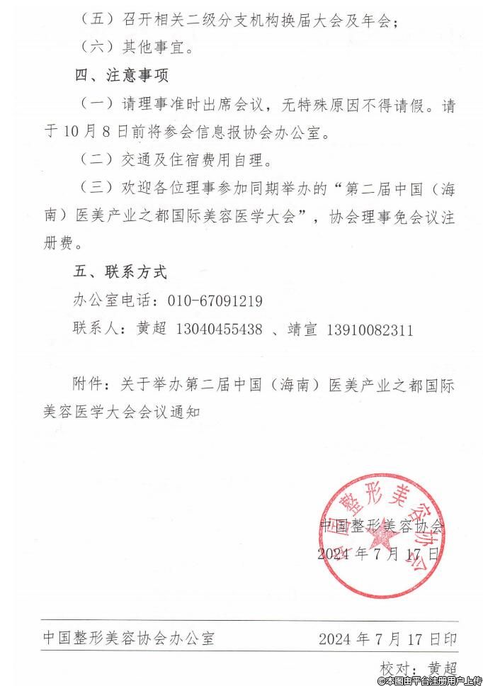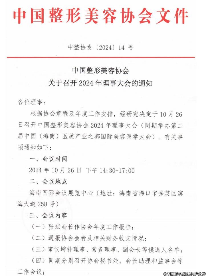 中國整形美容協(xié)會關于召開 2024 年理事大會的通知