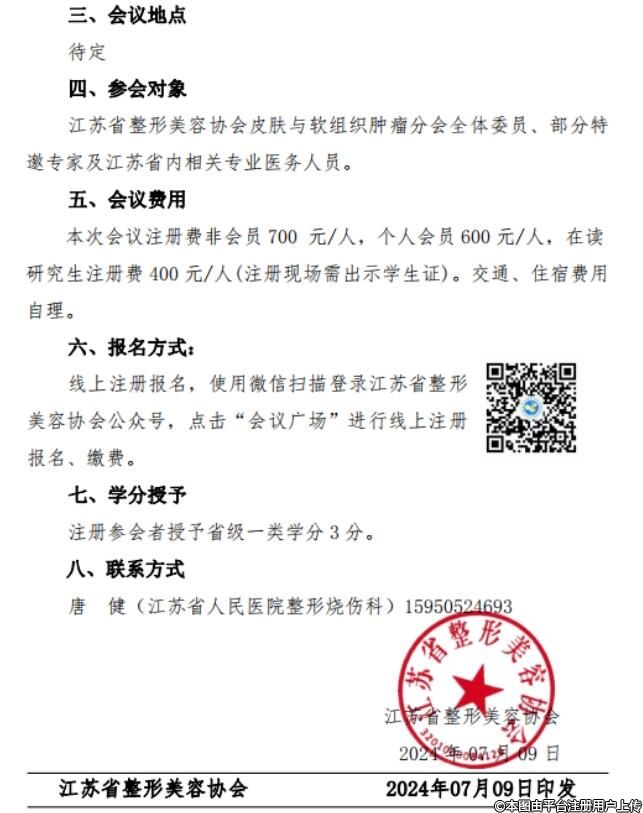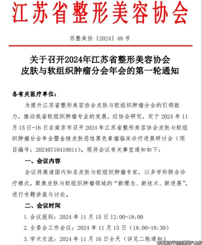 關(guān)于召開(kāi)2024年江蘇省整形美容協(xié)會(huì)皮膚與軟組織腫瘤分會(huì)年會(huì)的第一輪通知