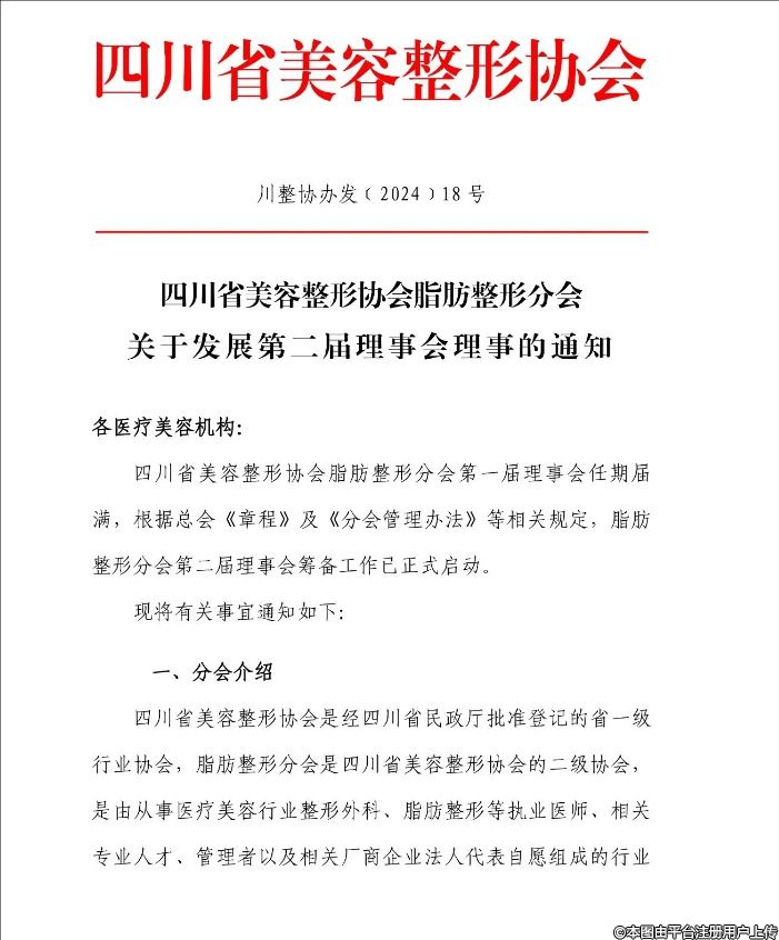 四川省美容整形協(xié)會脂肪整形分會第二屆理事會換屆通知