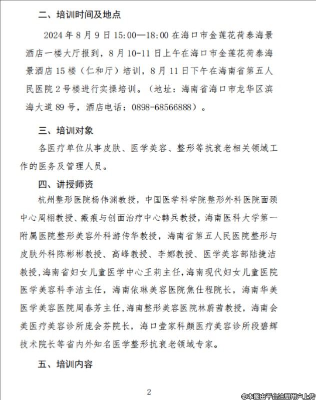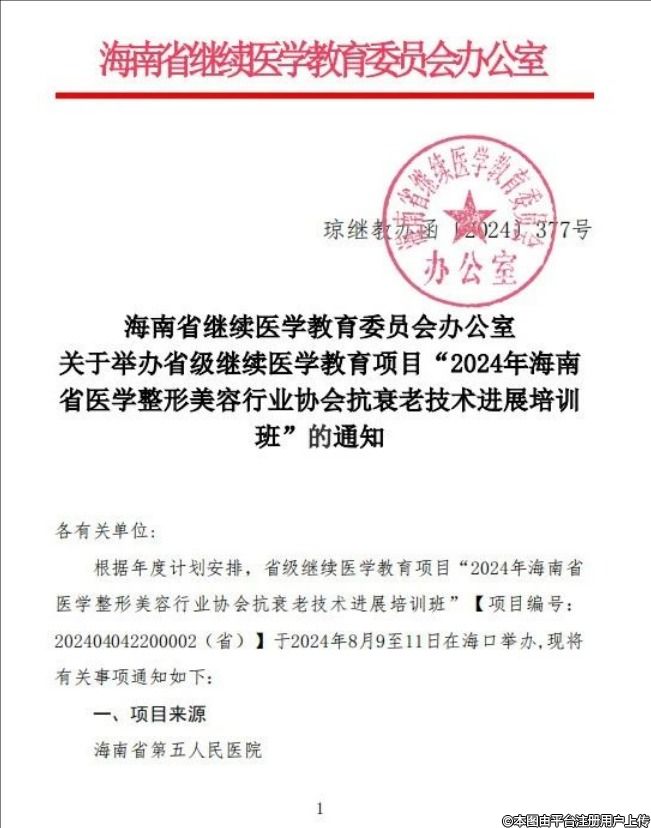根據(jù)年度計劃安排,省級繼續(xù)醫(yī)學教育項目“2024年海南省醫(yī)學整形美容行業(yè)協(xié)會抗衰老技術(shù)進展培訓班”【項目編號:202404042200002(省)】于2024年8月9至11日在??谂e辦。