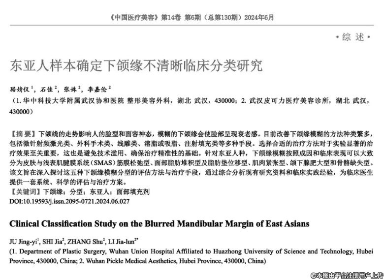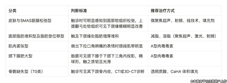 摘要:下頜線的走勢影響人的臉型和面容神態(tài),模糊的下頜緣會使臉部呈現(xiàn)衰老感。目前改善下頜緣模糊的方法種類繁多,包括微針射頻激光“類、外科手術(shù)類、線雕類、溶脂或吸脂、注射填充類等多種手段。選擇合適的治療方法對于實驗顯著的治療效果至關(guān)重要,這也是避免技術(shù)濫用、確保治療精準性的基礎(chǔ)。針對東亞人種,下頜緣模糊按照成因和臨床表現(xiàn)可以大致分為皮膚與淺表肌腱膜系統(tǒng)(SMAS)筋膜松弛型、面部脂肪堆積型及脂肪墊位移型、肌肉緊張型、頜下腺肥大型和骨骼缺失型。該文旨在深入探討這五種下頜緣模糊分型的評估方法與治療手段,通過綜合分析現(xiàn)有研究資料和臨床實踐經(jīng)驗,為臨床醫(yī)生提供一套系統(tǒng)、科學(xué)的評估與治療方案。