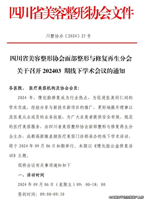 四川省美容整形協(xié)會(huì)面部整形與修復(fù)再生分會(huì)關(guān)于召開(kāi) 202403期線下學(xué)術(shù)會(huì)議的通知